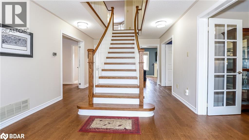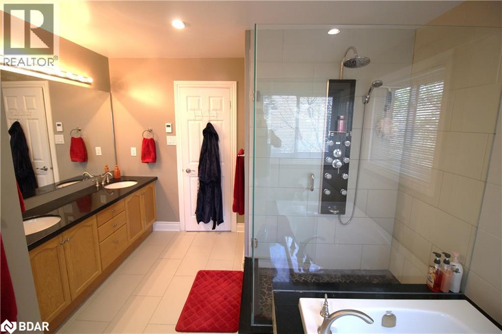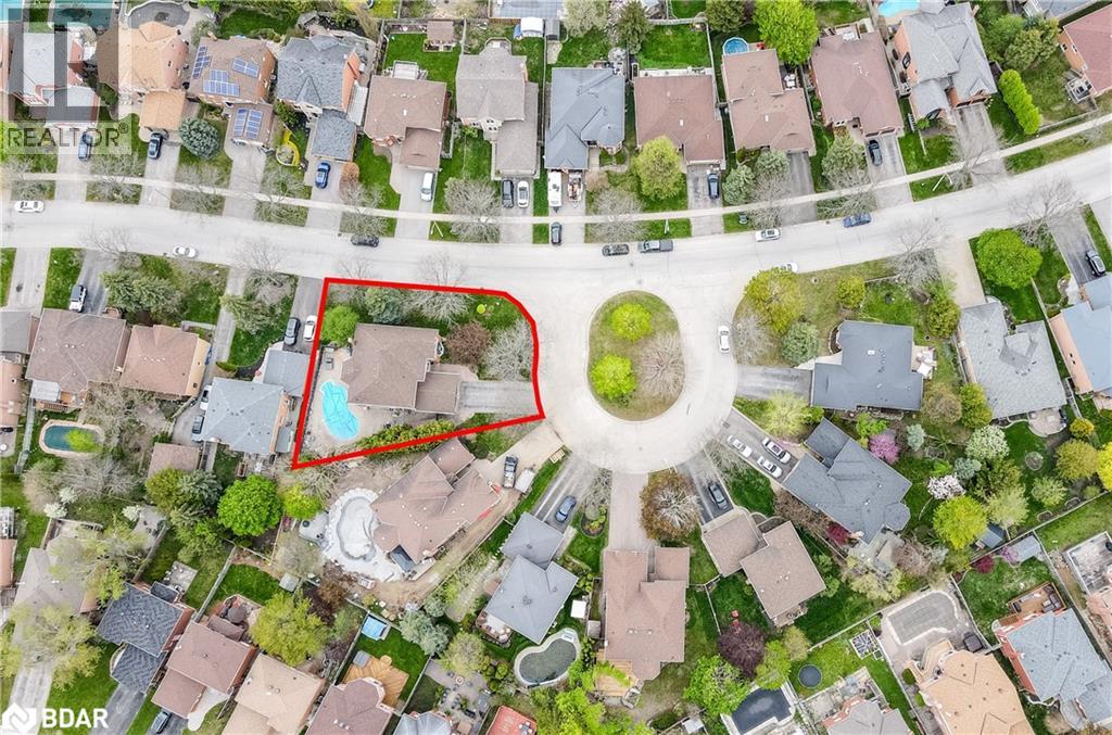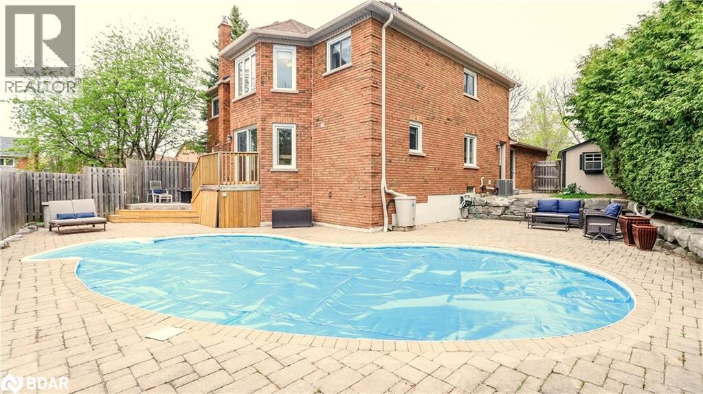 Quiet court location in one of Barrie’s best and most desirable neighbourhoods. This amazing, all-brick, updated/renovated, family home boasts over 4,700 sq ft of finished living space, and is just moments from the Go Station, top-rated schools, scenic walking trails, and the local beaches. Mature, corner lot with a parklike setting, no sidewalk on this side of street provides plenty of driveway parking (4 cars + 2 in garage). The main floor has a huge entry with custom stairs, amazing kitchen with centre island, stone counters and huge pantry, cozy family room with gas fireplace, formal living room, large dining room, den/office, mudroom and 2 piece bathroom finish off this level. Expansive primary suite offers a true retreat with a sitting/dressing area, WICC with built-in shelving & cabinetry and a renovated 5 piece ensuite. Bedrooms 2&3 share a Jack & Jill 4 piece ensuite, Bedroom 4 has its own 4 piece bathroom. Full finished basement has an enormous rec room, exercise area and a fantastic utility/storage room. The home has been recently renovated and updated throughout (stairs, flooring, counters, bathrooms, fixtures etc). Backyard oasis with custom inground pool with expansive patio area in a private setting with a great storage shed. This home needs to be seen to be appreciated. Truly an amazing home in an amazing neighbourhood, book your showing today! (id:2469)