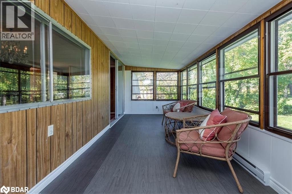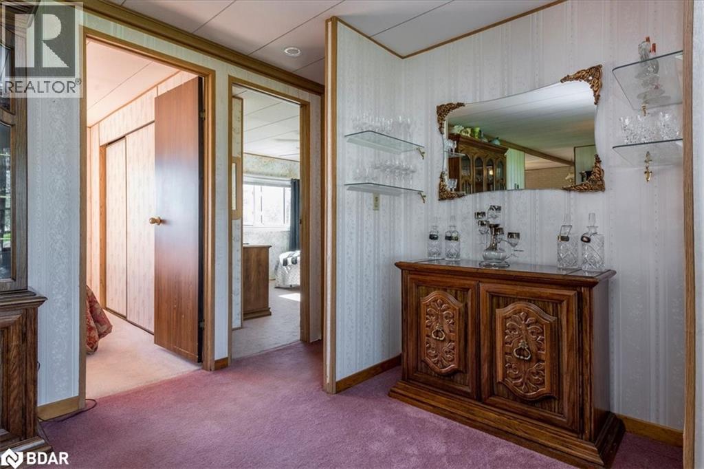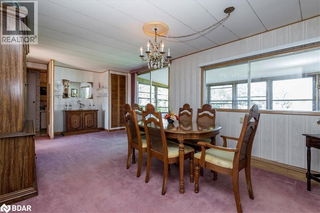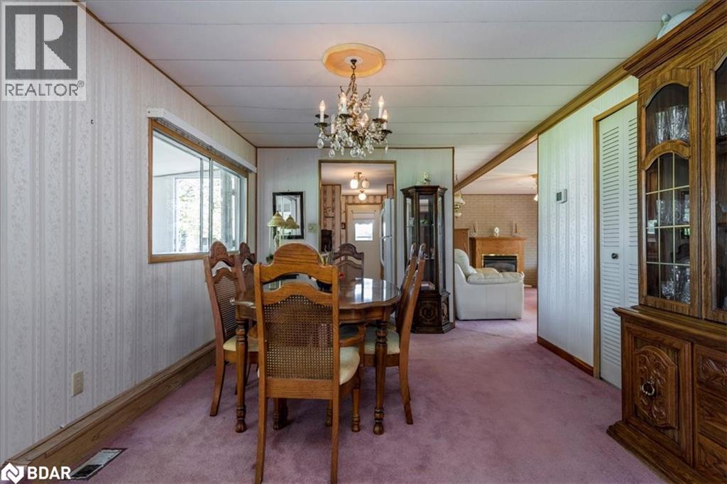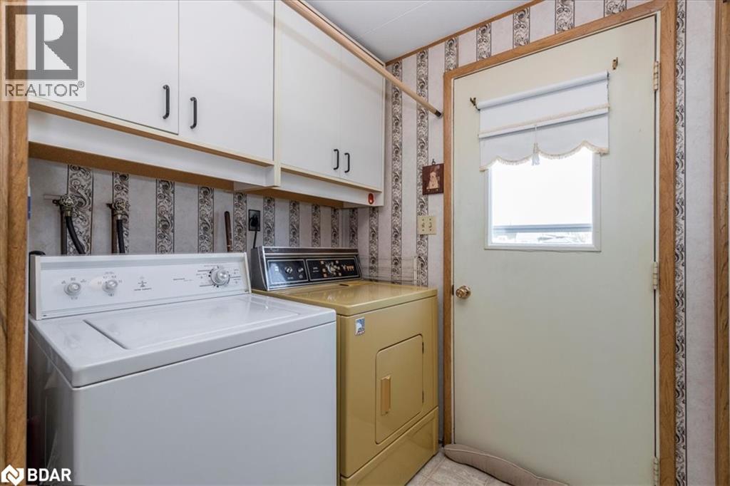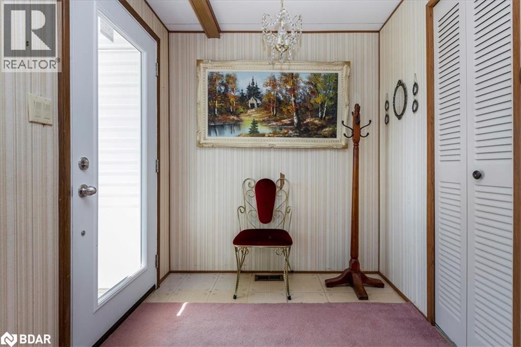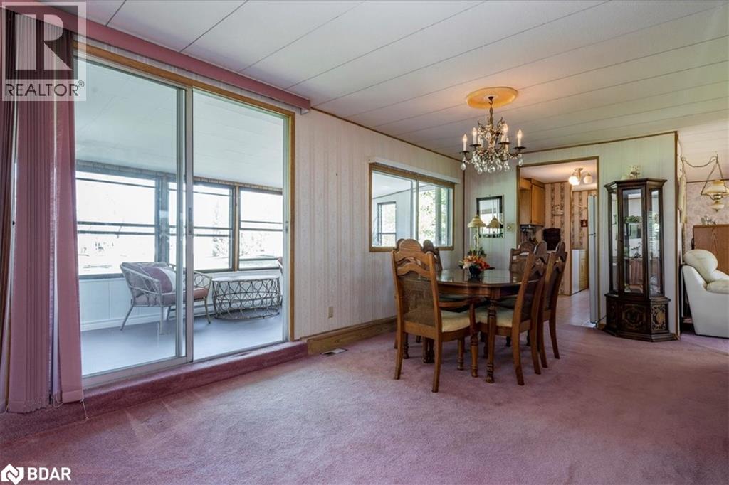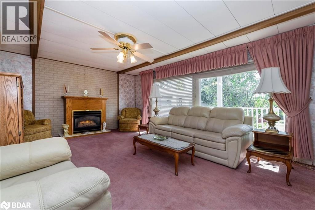 Great retirement living in the largest landlease community in Ontario and just south of Barrie. Conveniences galore within minutes. A small Mall on location with a Restaurant, variety store, pharmacy, hair dresser. A lovely home with a nice layout and great for a large dining room set so you can continue all your entertaining. Living room is large with big windows to let all the light in. A galley kitchen has lots of cupboards and your laundry is at the very end of the room. There are 1 1/2 bathrooms, two bedrooms, and a Sunroom. The outside of the home has had a peaked roof installed along with the siding changed to vinyl. Enjoy your afternoon or evening sitting on the front covered porch or on the back deck. So many activities within the community, you can be as busy or as quiet as you like. On going dances, darts, billards, kareoke, bingo, two outdoor heated salt water pools and the list goes on. Golf carts allowed ! New Fees 855.00 new taxes 155.30 (id:2469)