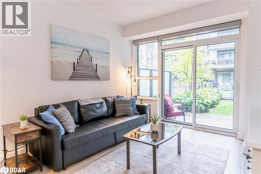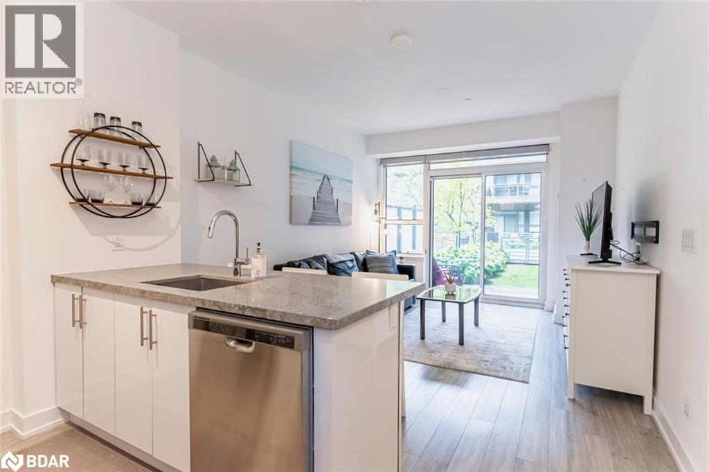 FULLY FURNISHED FOUR SEASON ESCAPE WITH OPEN CONCEPT LAYOUT, PARKING, STORAGE LOCKER & PREMIUM AMENITIES! This is the kind of place you escape to when weekends are meant for play, relaxation, and a little indulgence, where Friday Harbour becomes your personal four-season resort, and every visit feels like a mini vacation you never want to end. Picture slow mornings strolling the promenade with a coffee in hand, afternoons soaking up the vibe at the beach club or pool, and evenings filled with waterfront dining, live music, and that unmistakable energy that makes this destination so addictive. Golf days, marina views, kayaking, paddleboarding, nature trails, skating and seasonal festivals keep life here exciting year-round, while the fully furnished, ground-level space gives you a stylish home base to unwind and recharge. Thoughtfully styled with a relaxed coastal feel, the bright kitchen anchors the space with crisp white cabinetry, stainless steel appliances, subway tile and a generous breakfast bar made for casual meals, late-night snacks, and morning planning sessions before heading out to play. Oversized sliding doors flood the living room with natural light and lead to a private patio where leafy courtyard views create a peaceful backdrop for evening wine or post-adventure downtime, while the comfortable primary bedroom offers a calm, inviting retreat after full, fun-filled days. Even the spa-inspired bathroom carries that polished, hotel-style finish that makes every stay feel special, and with in-suite laundry, dedicated parking and a locker, ownership stays refreshingly easy. Perfectly positioned for investors chasing short-term rental potential, couples craving spontaneous escapes or cottagers wanting the energy of a resort without the maintenance, this is where lifestyle takes centre stage and every visit feels like a well-earned retreat. (id:2469)