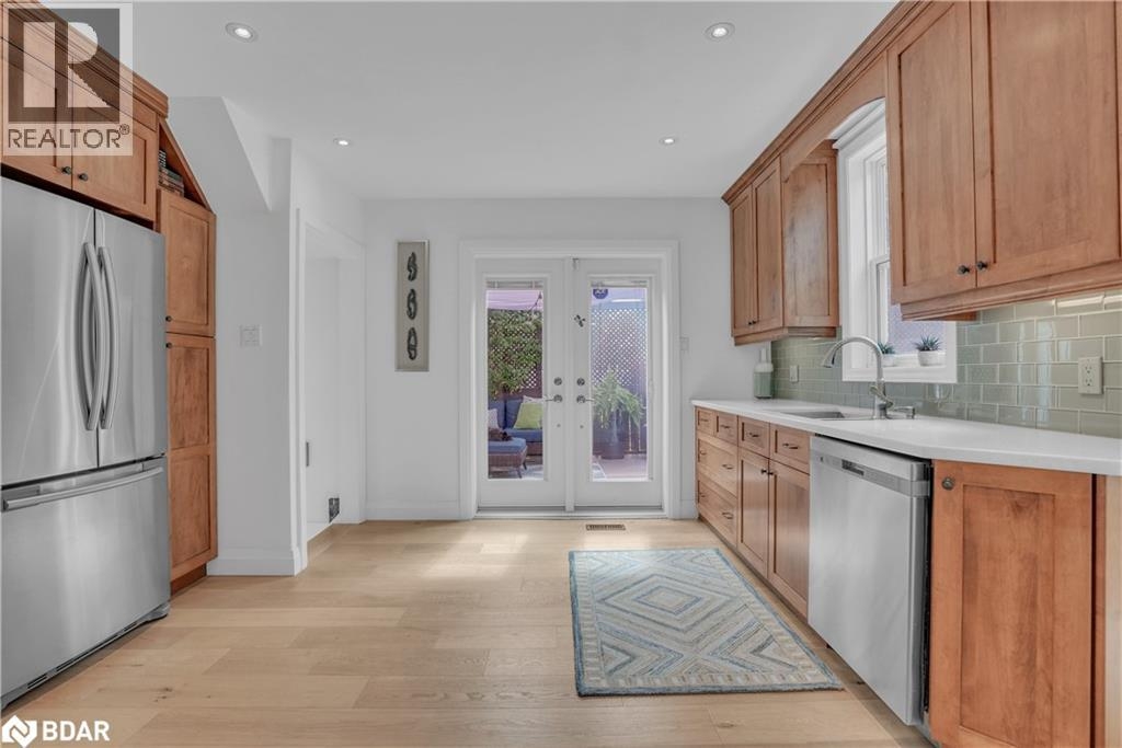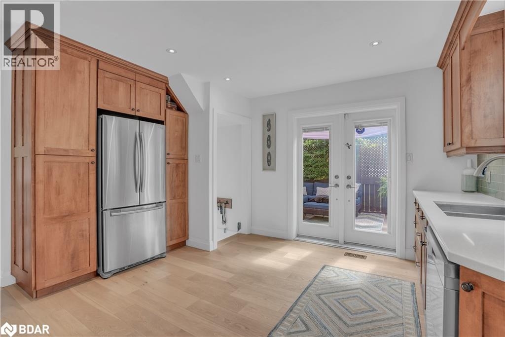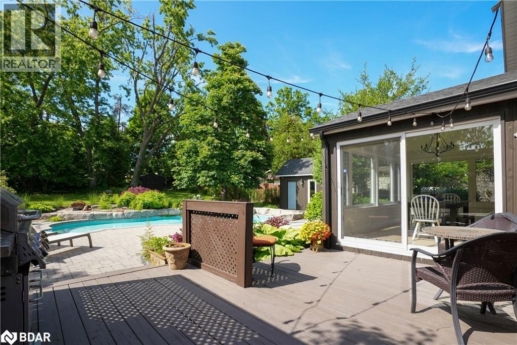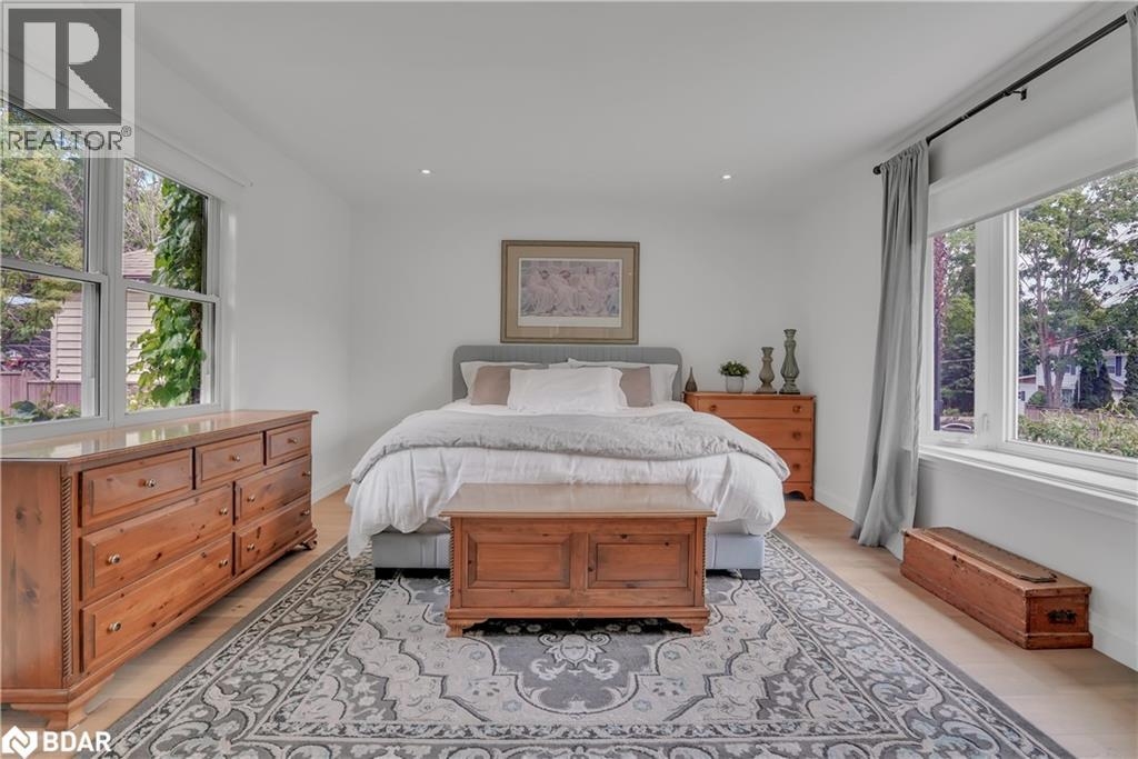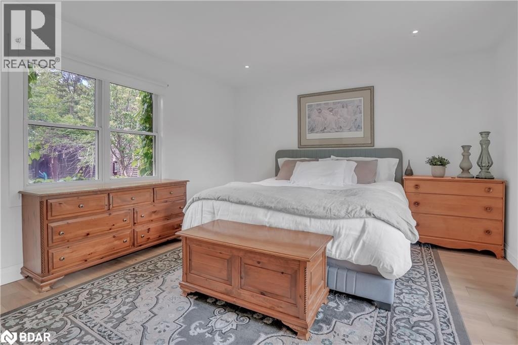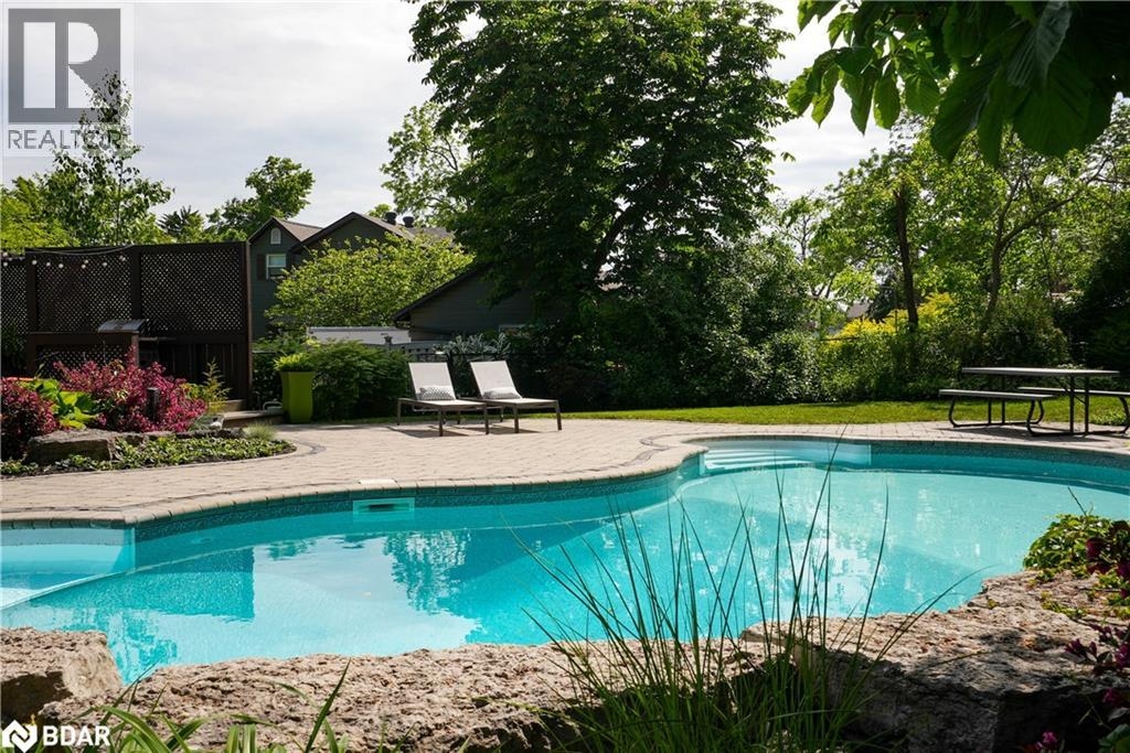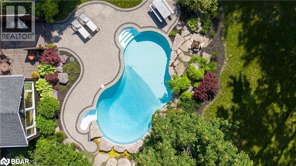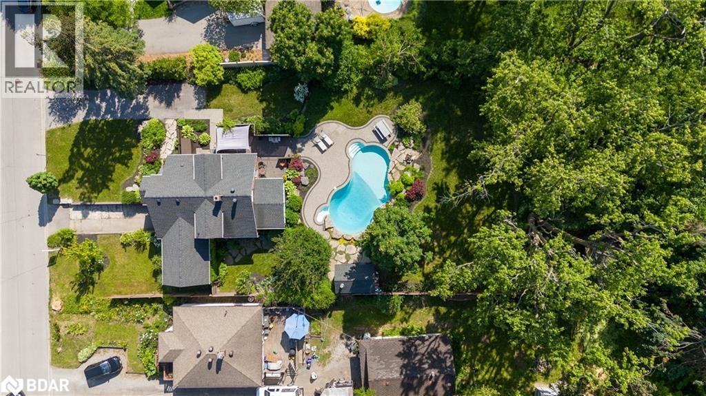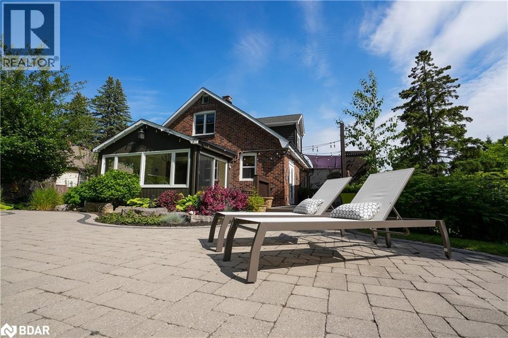 Set on one of Barrie’s most prestigious streets, this exceptional 3-bedroom, 2-bath home combines timeless character with modern comfort— offering a rare opportunity to own nearly half an acre in the heart of the city. Framed by towering trees and located just minutes from the lake, top-rated schools, and vibrant downtown amenities, this all-brick residence is a true standout. Inside, you’ll find engineered light oak flooring, pot lights throughout, and a neutral, move-in-ready palette that highlights the home’s historic charm. The spacious kitchen features solid oak cabinetry, quartz countertops, a bar sink, tile backsplash, and expansive windows that overlook the showstopping backyard. Upstairs, two bright bedrooms include one with custom closets and built-ins, while the third bedroom and beautifully updated bathrooms (3-piece on the main, 4- piece upstairs) offer flexibility for family living or guest space. A finished basement provides a dedicated laundry area, additional storage and a recreation space perfect for entertaining/childrens playroom. What truly sets this home apart is its luxurious, professionally landscaped lot— measuring 87 feet wide by 236 feet deep. Step outside into your own private resort: interlock and flagstone pathways wind through lush gardens, with armour stone features adding dramatic elegance. At the heart of this private oasis lies a stunning kidney-shaped in-ground pool, artfully set into its natural stone surroundings and complemented by a charming pool house—all fully fenced and surrounded by mature greenery that ensures year-round privacy and serenity. Additional features include two driveways, a fully fenced yard, and unbeatable access to parks, waterfront trails, cafes, and shops—all within walking distance. (id:2469)