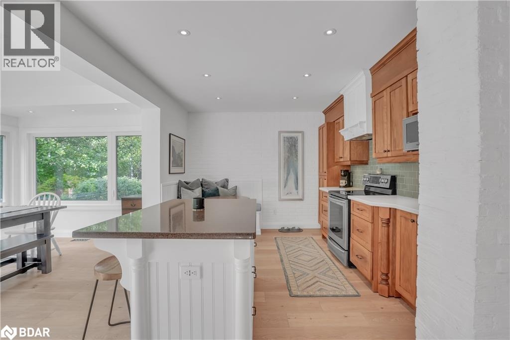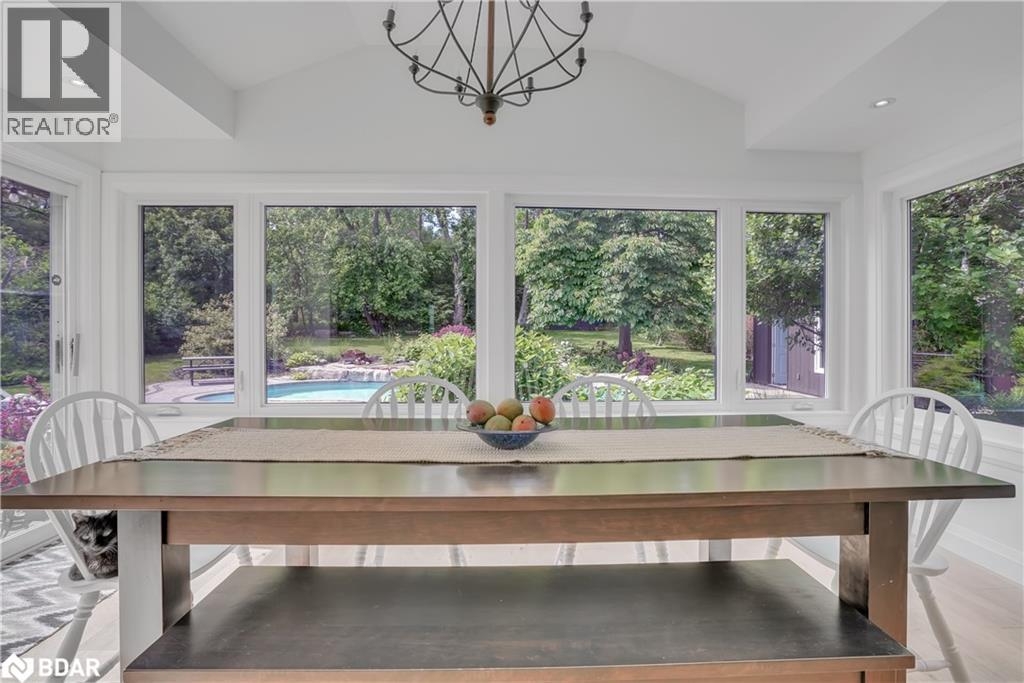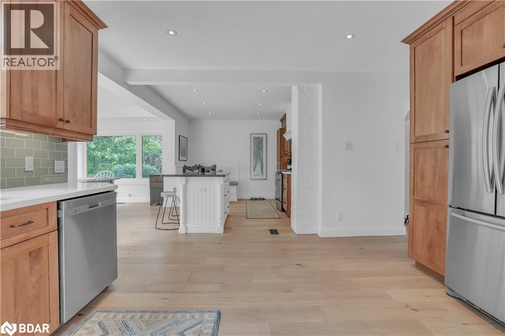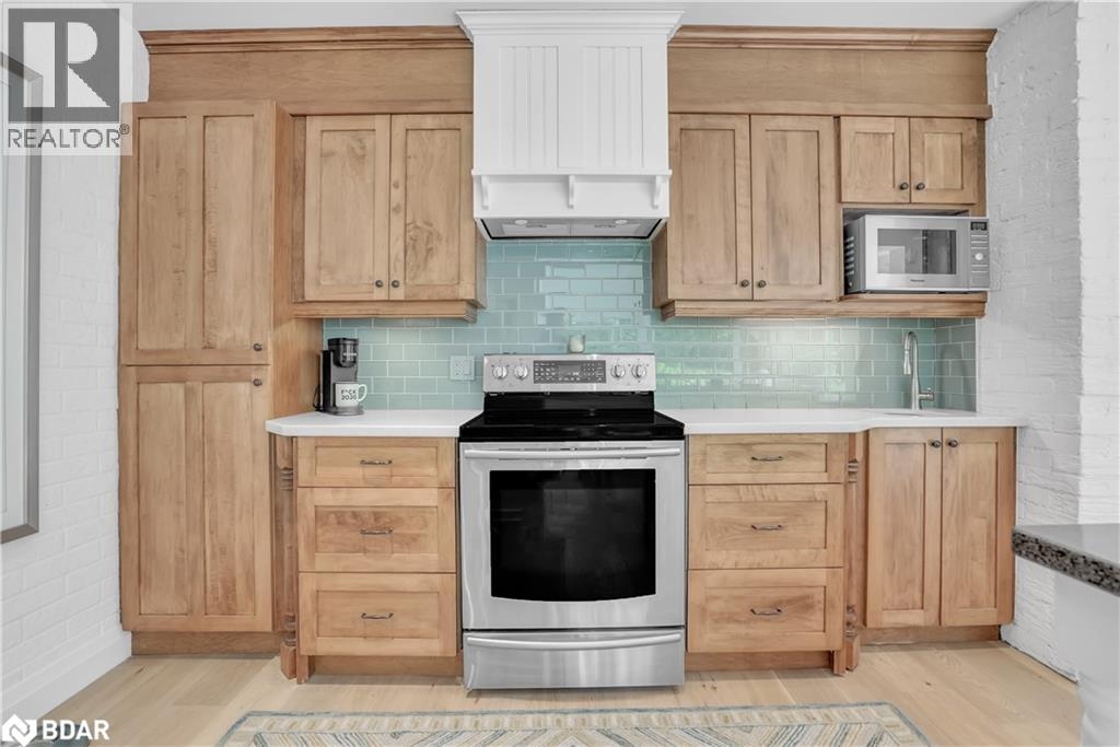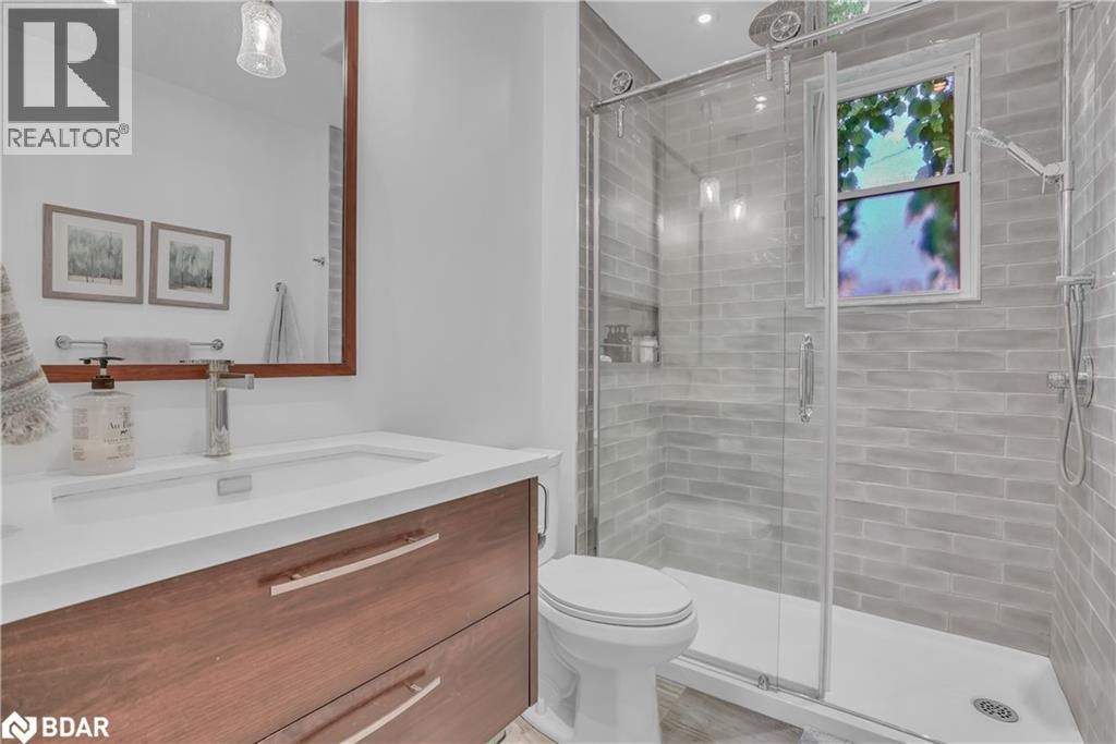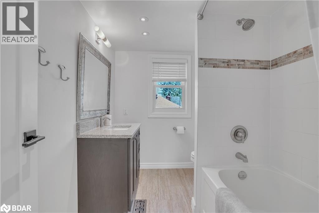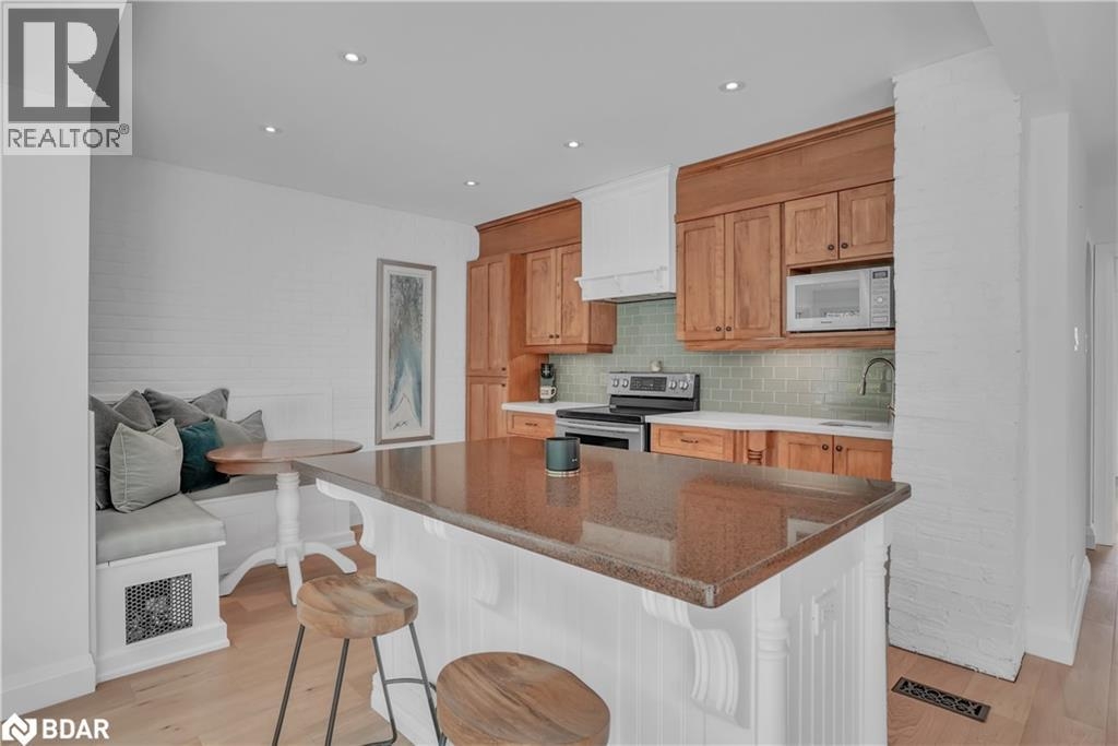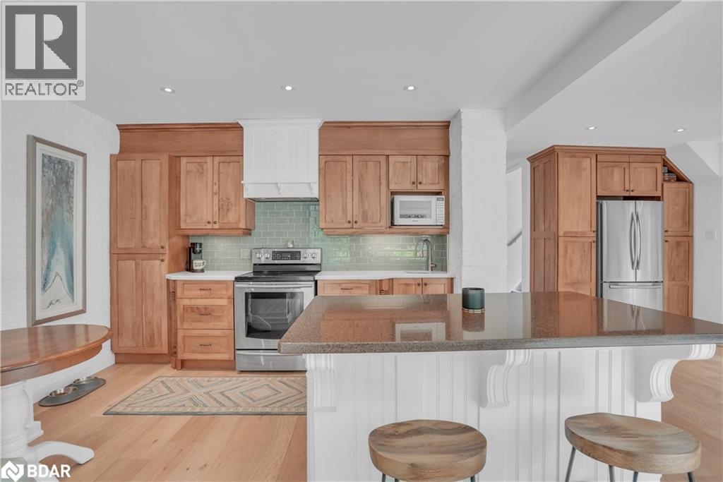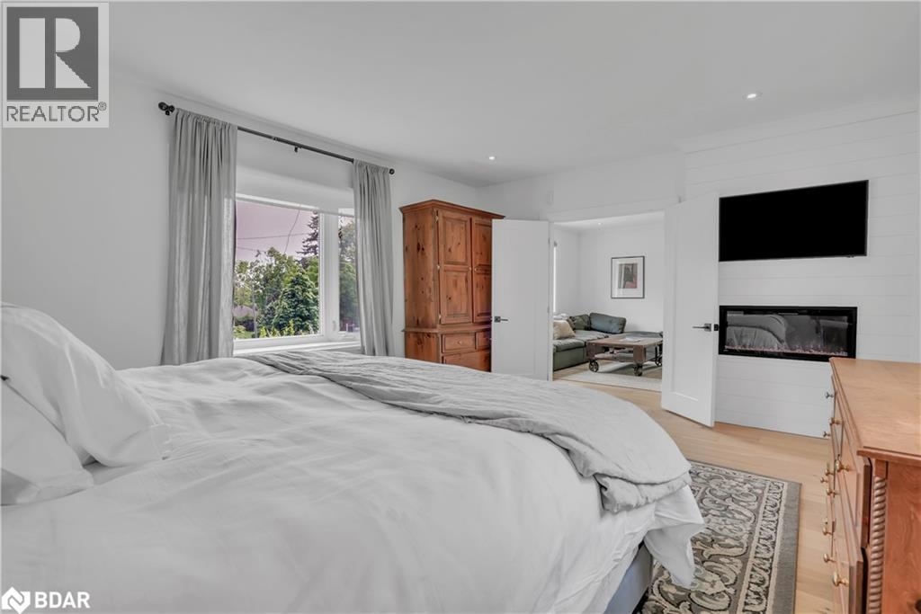Set on one of Barrie’s most prestigious streets, this exceptional 3-bedroom, 2-bath home combines timeless character with modern comfort— offering a rare opportunity to own nearly half an acre in the heart of the city. Framed by towering trees and located just minutes from the lake, top-rated schools, and vibrant downtown amenities, this all-brick residence is a true standout. Inside, you’ll find engineered light oak flooring, pot lights throughout, and a neutral, move-in-ready palette that highlights the home’s historic charm. The spacious kitchen features solid oak cabinetry, quartz countertops, a bar sink, tile backsplash, and expansive windows that overlook the showstopping backyard. Upstairs, two bright bedrooms include one with custom closets and built-ins, while the third bedroom and beautifully updated bathrooms (3-piece on the main, 4- piece upstairs) offer flexibility for family living or guest space. A finished basement provides a dedicated laundry area, additional storage and a recreation space perfect for entertaining/childrens playroom. What truly sets this home apart is its luxurious, professionally landscaped lot— measuring 87 feet wide by 236 feet deep. Step outside into your own private resort: interlock and flagstone pathways wind through lush gardens, with armour stone features adding dramatic elegance. At the heart of this private oasis lies a stunning kidney-shaped in-ground pool, artfully set into its natural stone surroundings and complemented by a charming pool house—all fully fenced and surrounded by mature greenery that ensures year-round privacy and serenity. Additional features include two driveways, a fully fenced yard, and unbeatable access to parks, waterfront trails, cafes, and shops—all within walking distance. (id:2469)